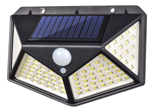 Aplique Reflector Solar 100 Led Recargable Luz Exterior Carcasa Negro Luz Blanco Frío