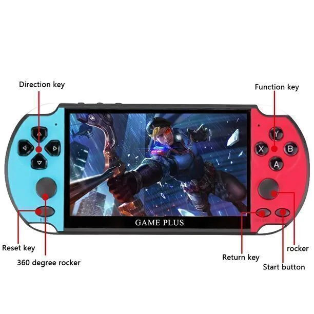 ¡Revive los clásicos en cualquier lugar! La consola X7 Plus combina un diseño ergonómico con una pantalla gigante de 5.1 pulgadas. Incluye joysticks analógicos dobles para mayor precisión y salida para TV. ¡Juegos, música y video en un solo dispositivo!